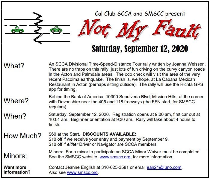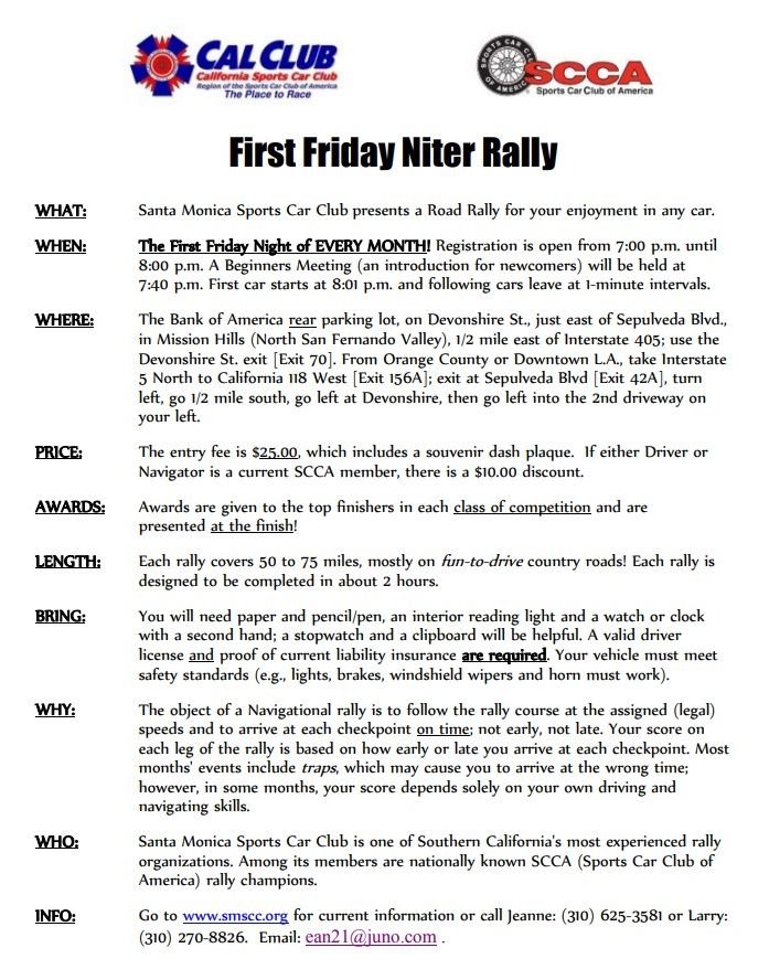 is the Rallymaster, and he has written a nice tour rally that runs primarily in Ventura County. We are