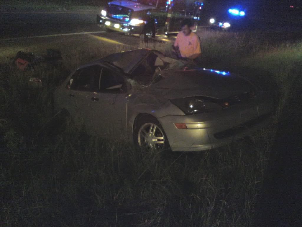 Whats up mini people i have been looking at a bunch of new cars an one of them was a mini cooper. The reason why im looking for a new/different car is because Saturday night i hit a slick spot on an off rampan the back end came out an rolled 2 to 3 time befor it stopped on all 4 tires:eek:, The car i drove was a 2004 Ford focus with about 2 k in just suspension parts, the car produce about 160 hp an 150 ft lbs with a 2.3L I-4, i was setting it up for Autox but was never able to get it on the track. I wore my seat belt (an i can tell you, all that dont wear it to wear it because it saved my ass big time, just look at the pictures) an only have a few scrach's on my leg from the glass an a little sore neck but not bad, other than that im fine.