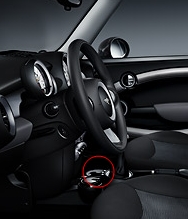 its the 2008 model mini ONE and this button is just in front of the gear box. i think it's the middle one from 3 round small buttons.