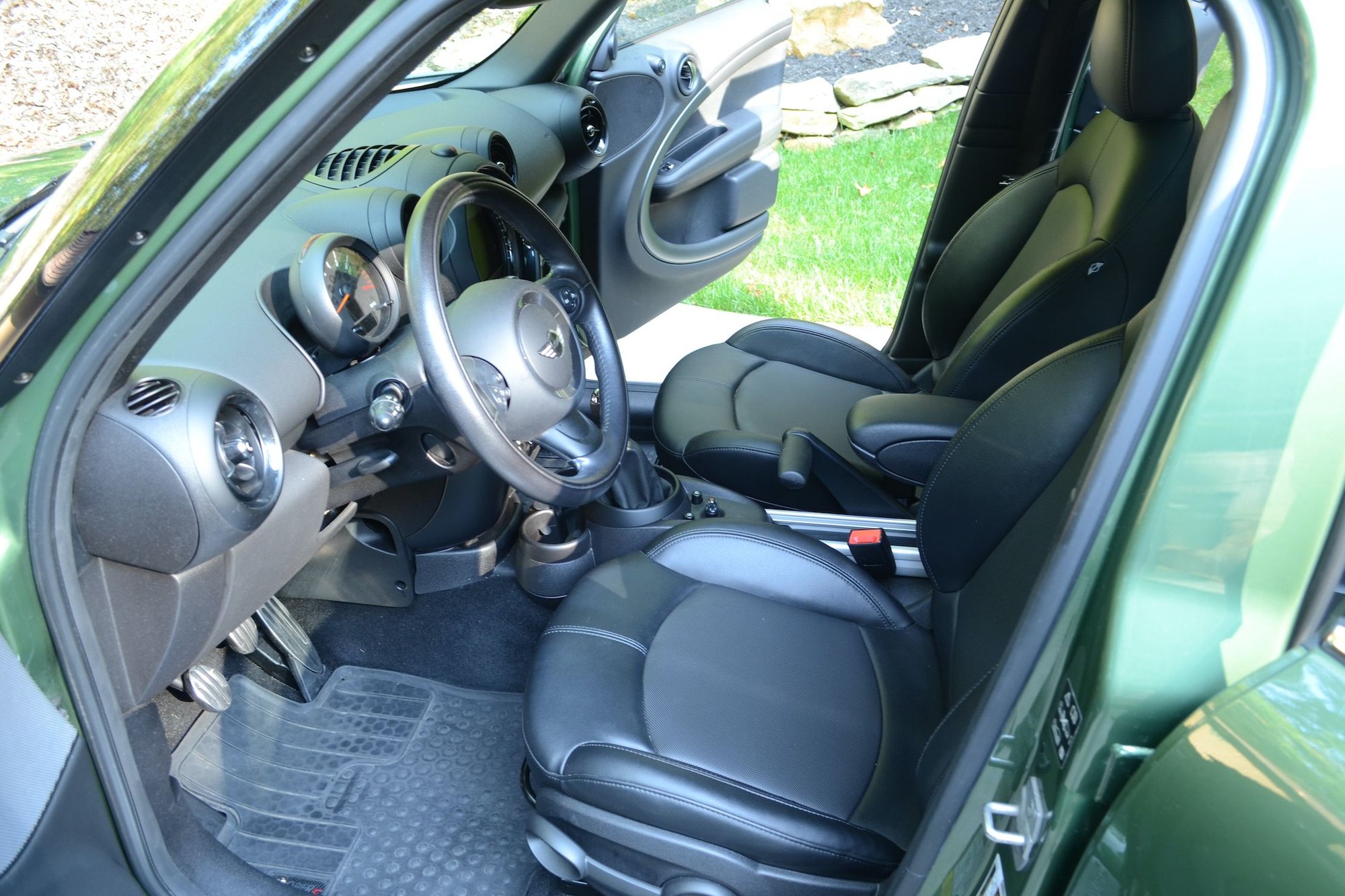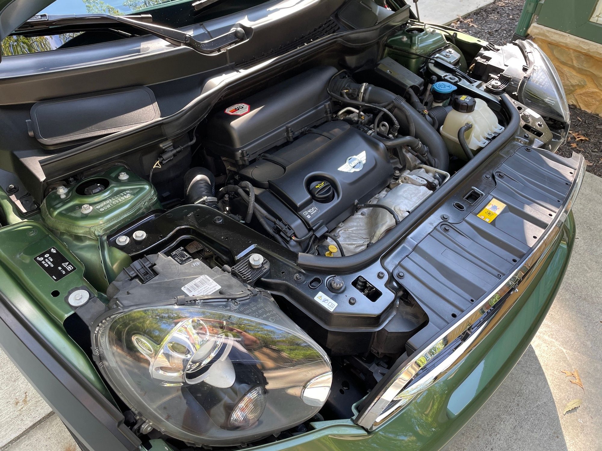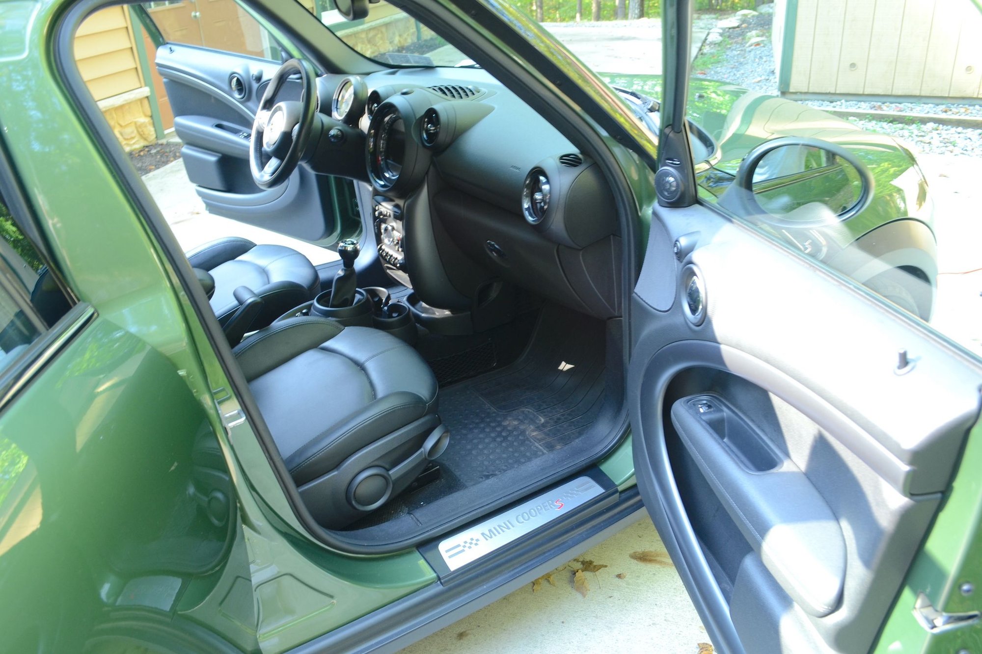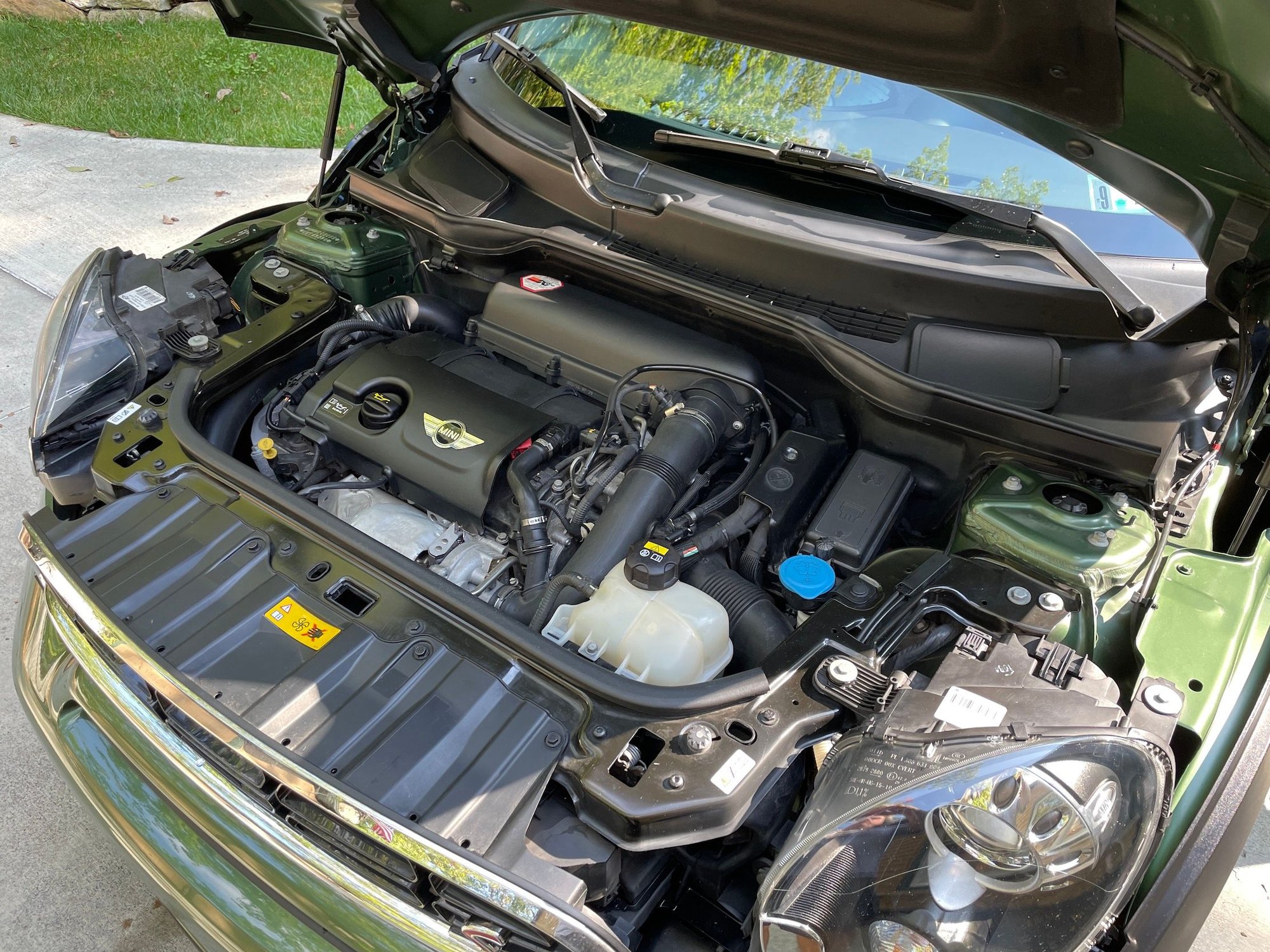 Early retirement forces the sale of my wife’s beloved Jungle Green (“Mowgli”) MINI. Exceptionally clean, always garaged, we ordered it factory de-badged with the uncommon Sport Suspension (tighter shocks, stronger springs), 18” wheels, HUGE double-glass sunroof, Media package, Cold-Weather package, Homelink remote in rearview mirror, Xenon headlights, auto-dimming heated mirrors, Bluetooth Mini Connected + Harman-Kardon sound system, blacked out trim, black headliner, and rear parking sensors.