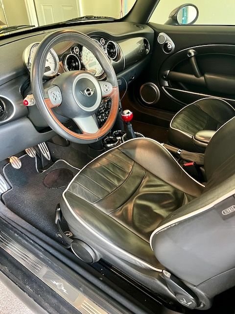 This MINI also includes just about EVERY OPTION available in 2008. Black Lounge Leather, Factory Alarm, and the excellent functioning Harman Kardon upgrade sound system. All of the options work as designed and all maintenance has kept this baby running like new with butter smooth shifting and massive acceleration. The convertible top works as it should and the rear window and seal are in excellent condition.
