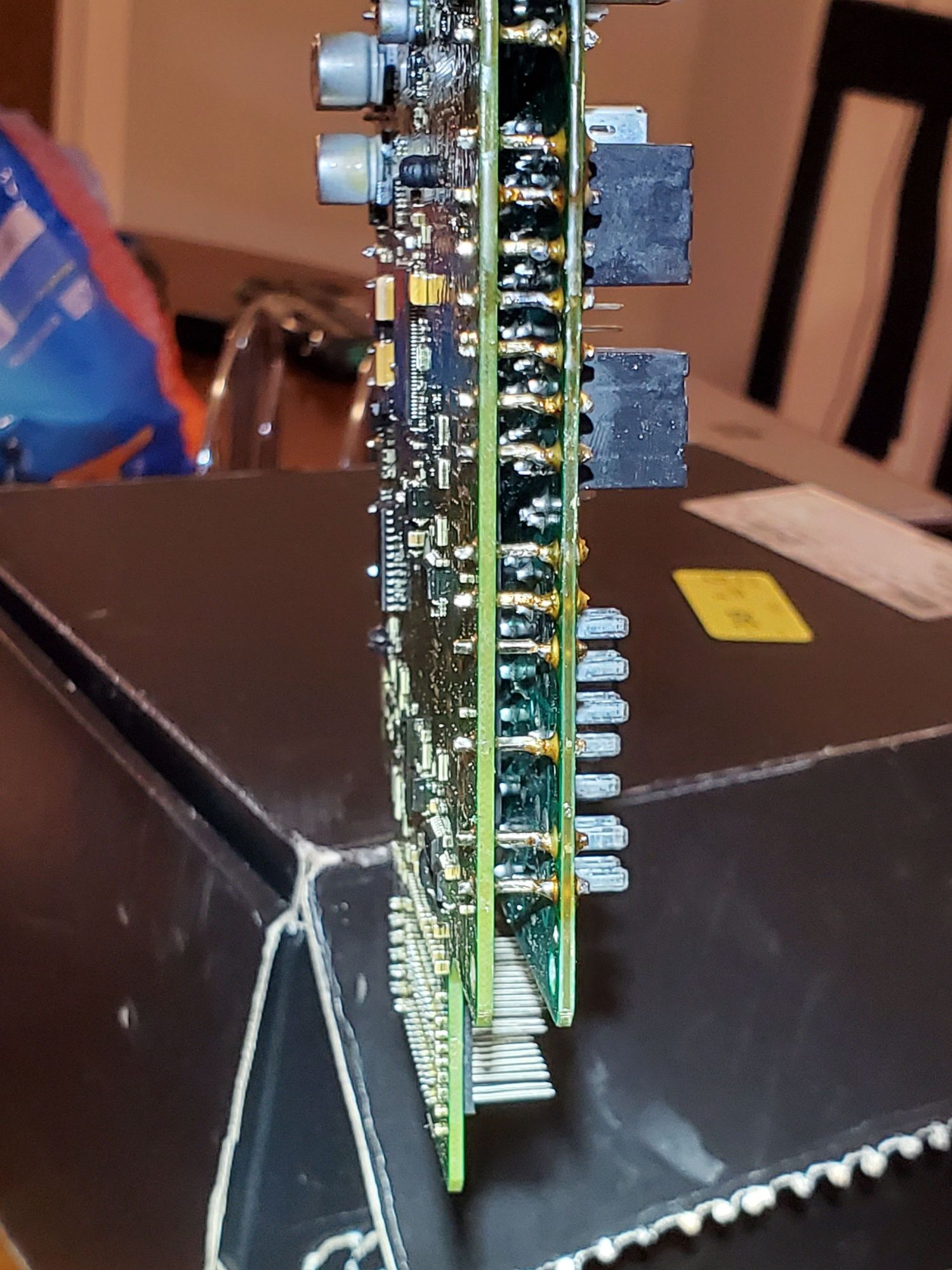 I used wire cutters to cut the studs to split the 2 boards apart. Here they have been soldered back together. I just soldered the seam that I cut.