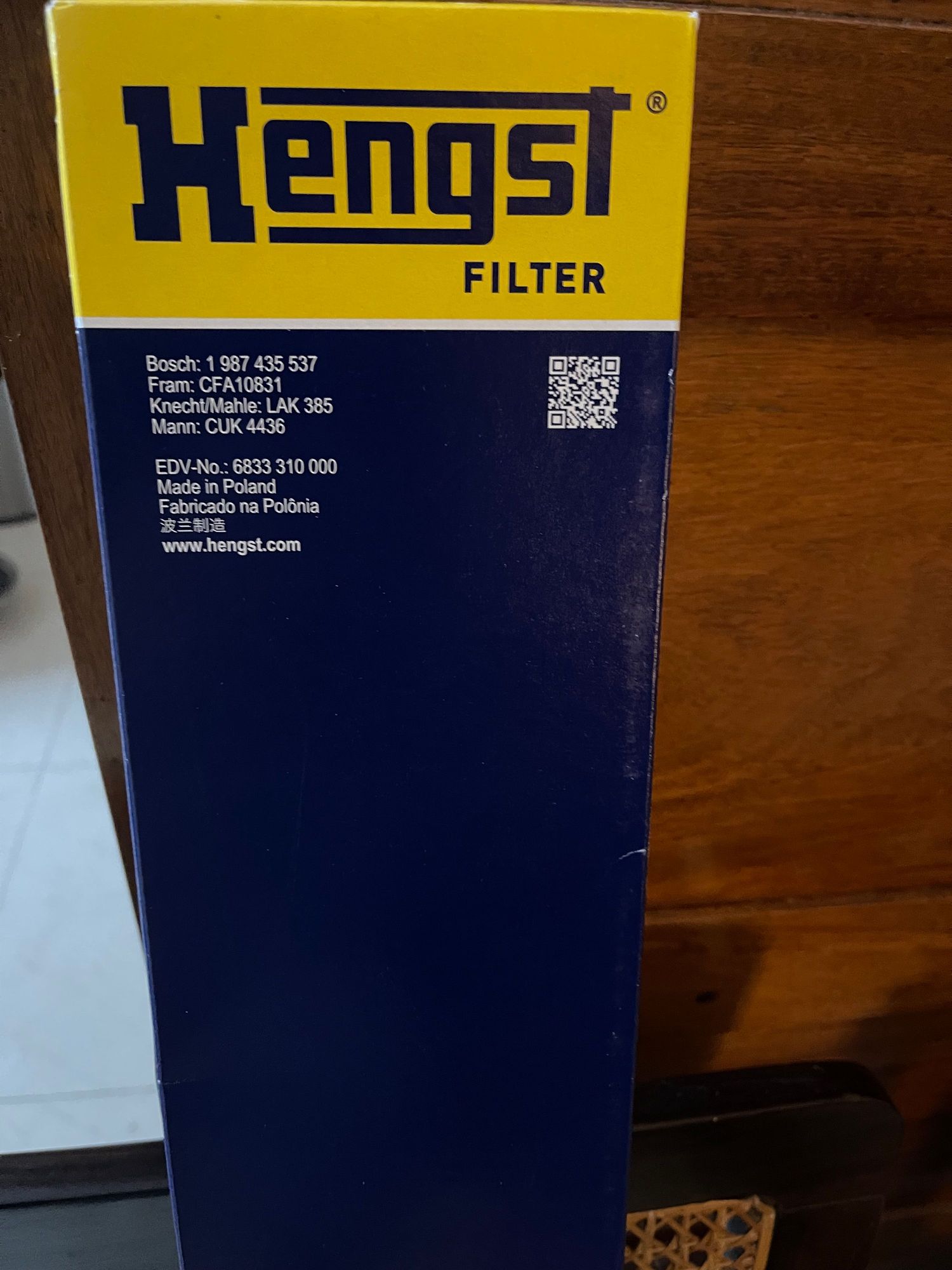Cabin Filter by KENGST. Sourced from ECS Tuning Ohio USA…arrived in a week’s time via FEDEX. These filters are equivalent to Bosch or Mahle.